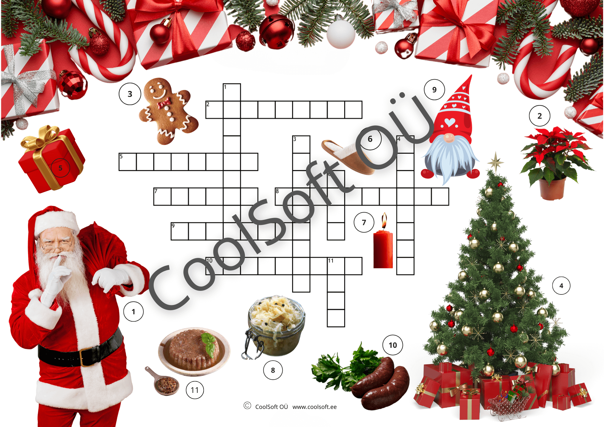 Jõuluteemaline ristsõna tööleht aitab lastel mängulisel viisil kinnistada jõuludega seotud sõnavara. 🎄🎁