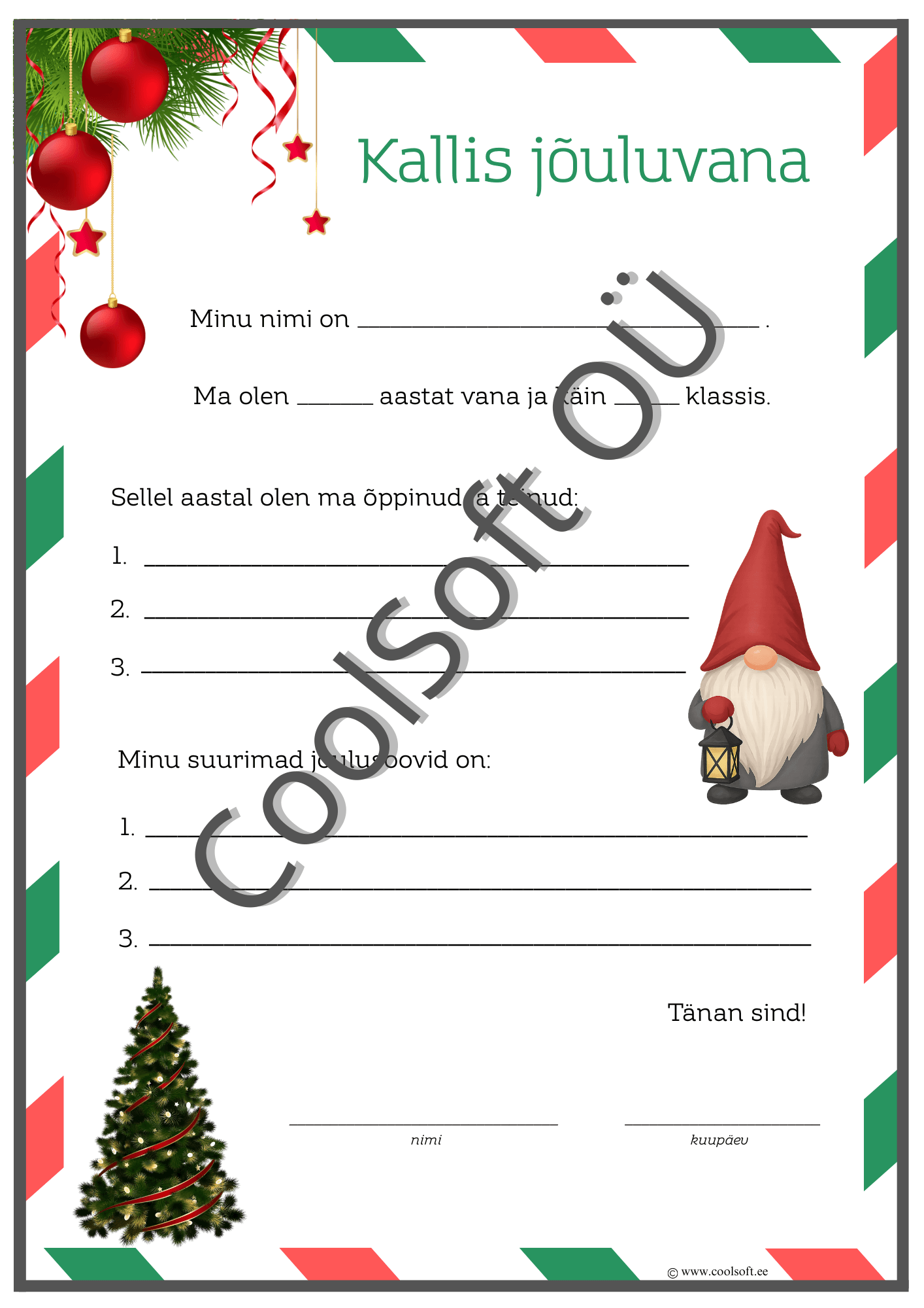 Ole esimene, kes hindab toodet “Tööleht nr 278 – kiri jõuluvanale” Tühista vastus