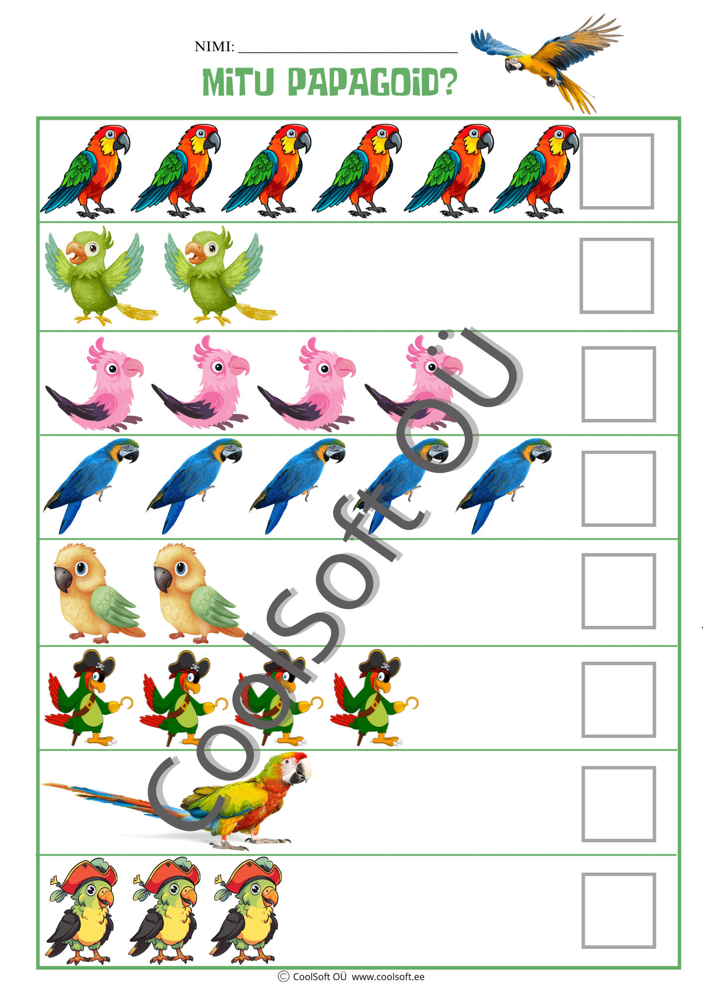 Töölehed sobivad suurepäraselt arvutamise, tähelepanu ja visuaalse eristamise harjutamiseks.