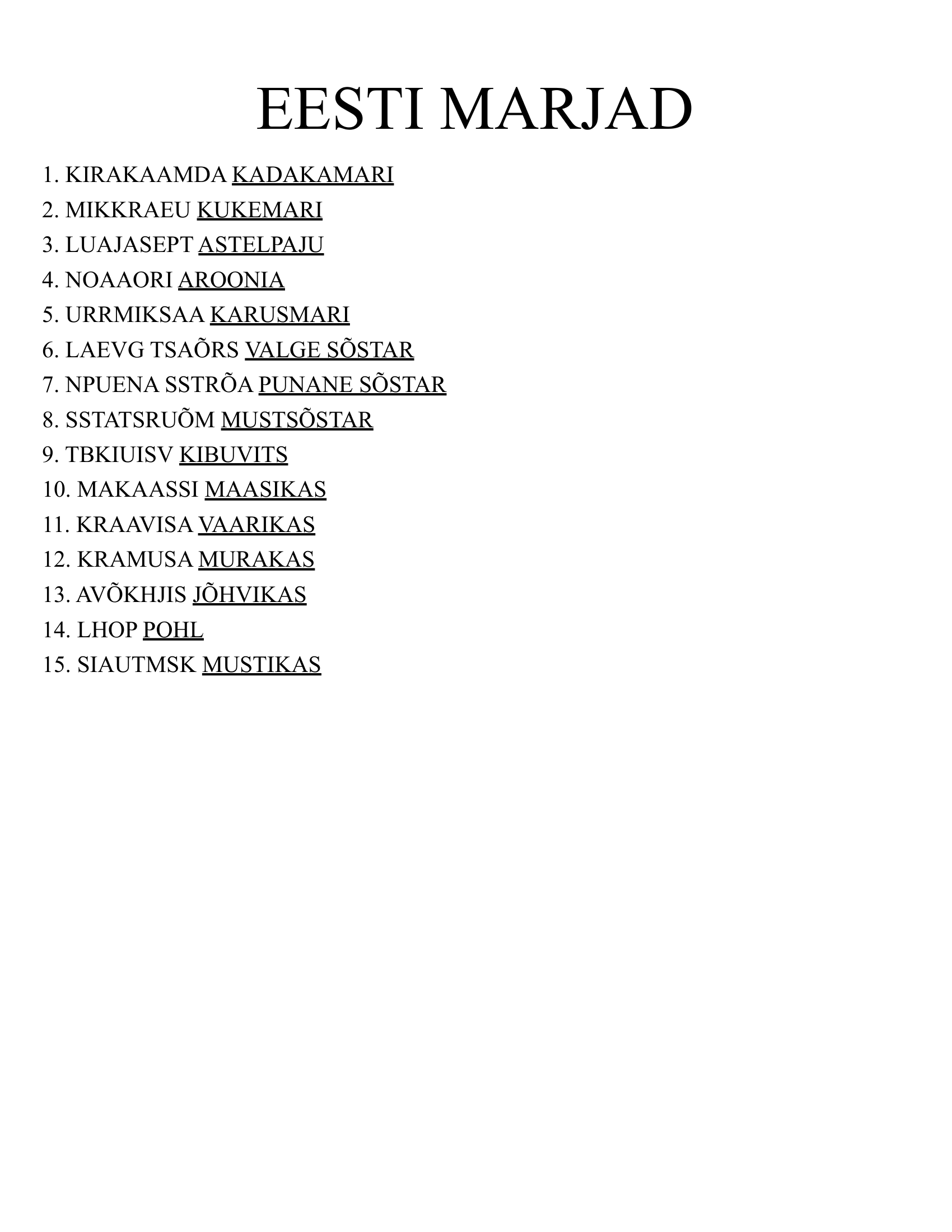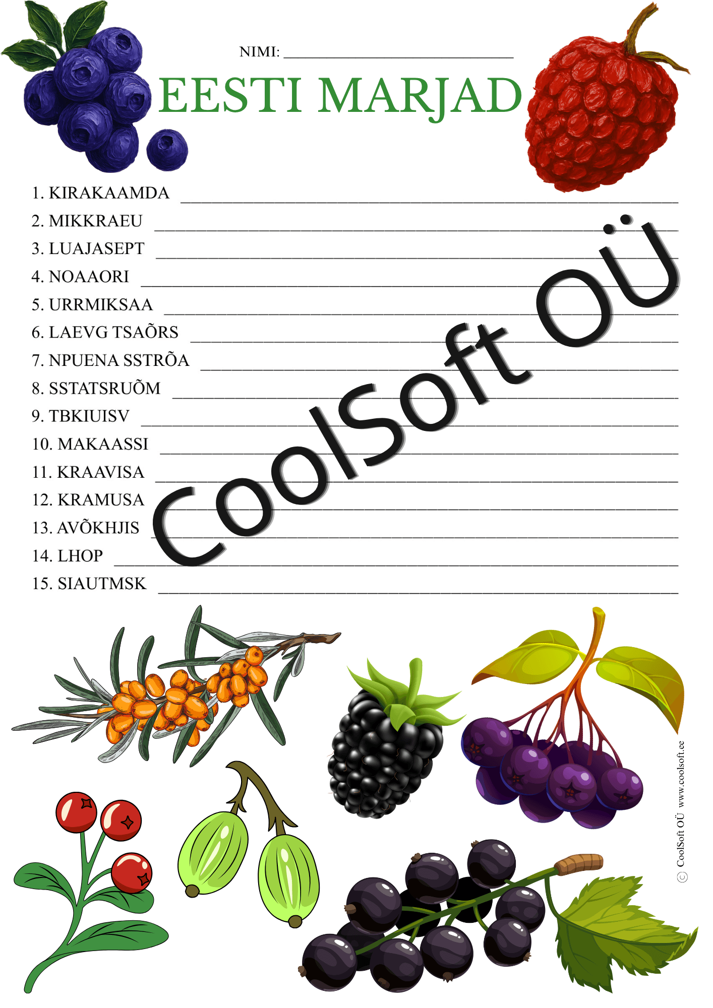 Tööleht nr 308 – tähed segamini. Eesti marjad