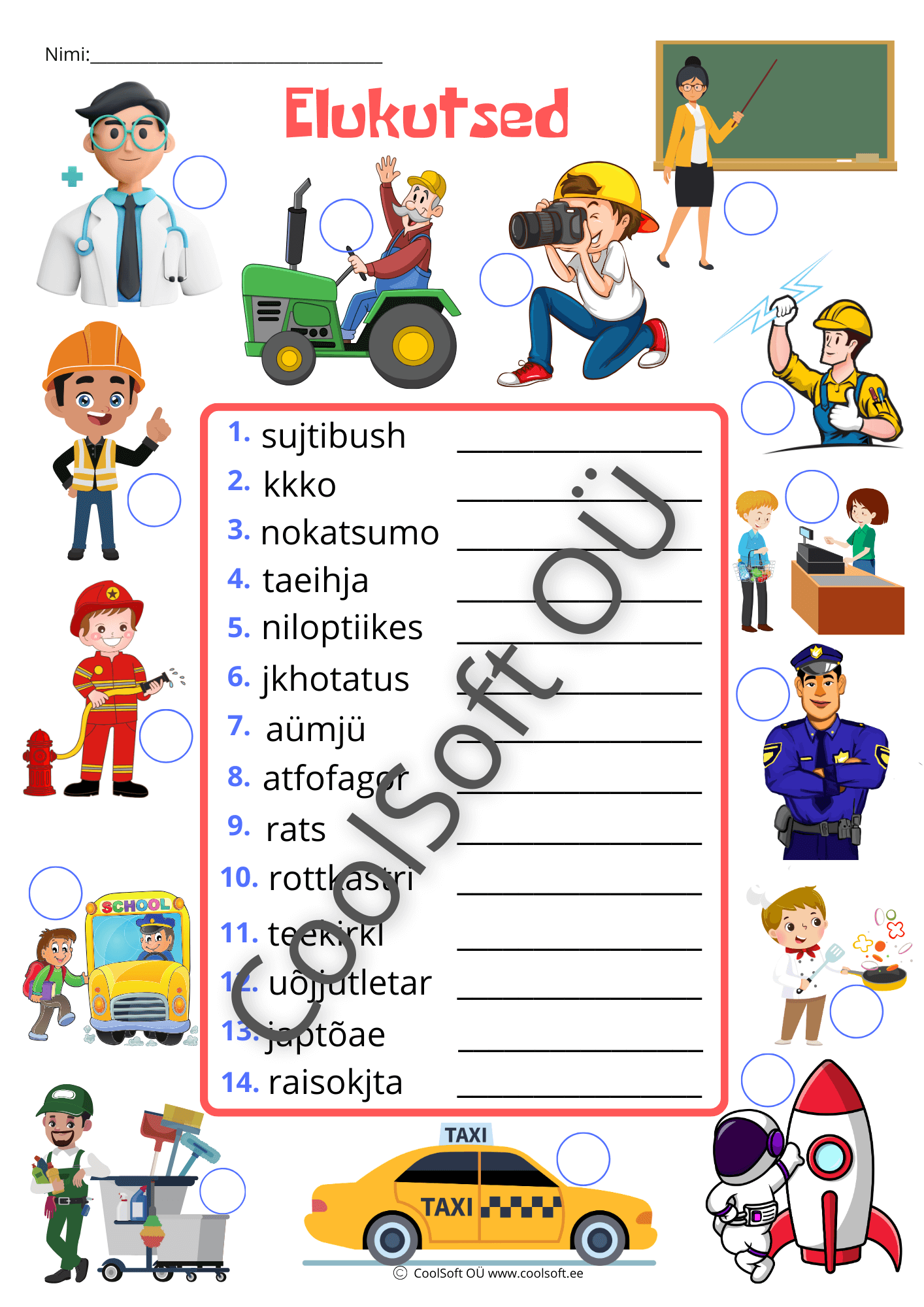 Teised elukutsetega seonduvad töölehed leiad siit.