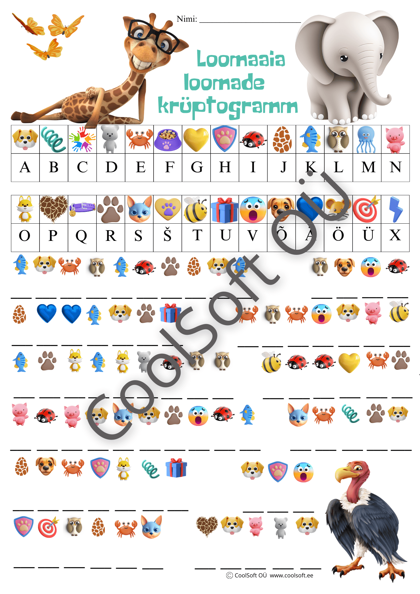 Tööleht nr 116 – loomaaia loomade krüptogramm