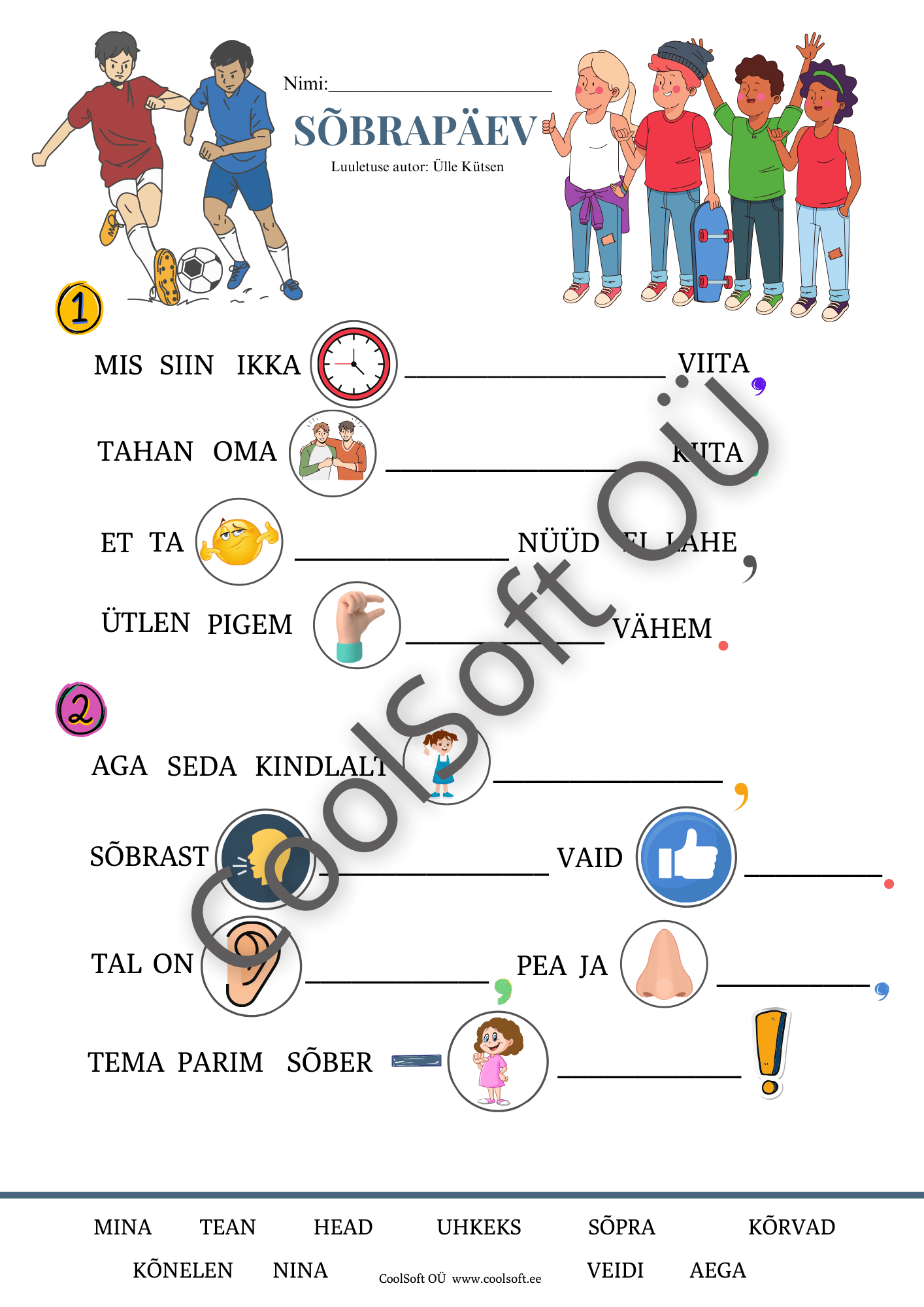 Ülesanded arendavad keeleoskust, tähelepanu ning lausete loogilist mõistmist, samal ajal pakkudes aruteluainet sõprusest ja tunnetest. 😊📘