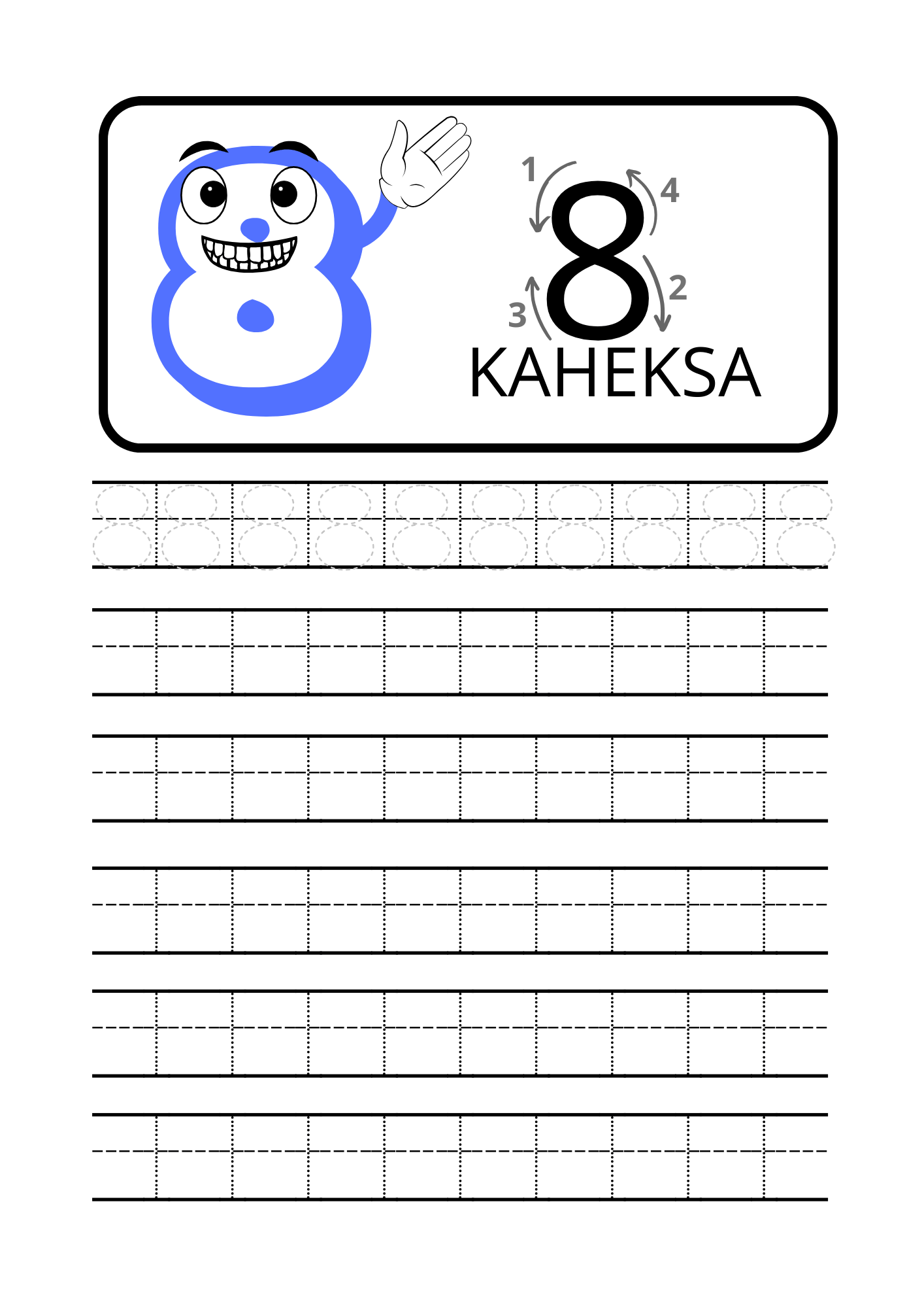 Numbrite kirjutamise töölehed (0–9) aitab lapsel samm-sammult õppida numbreid õigesti kirjutama ja kinnistama.