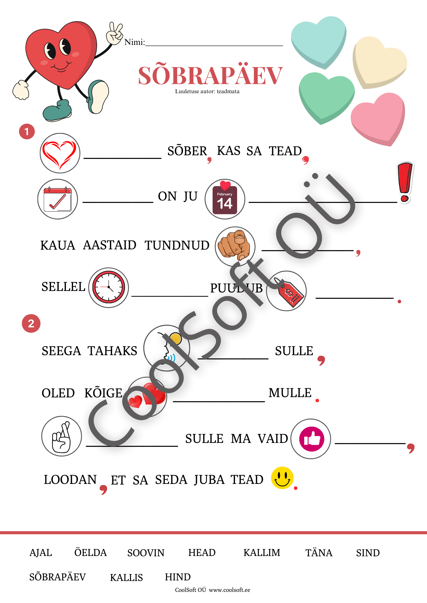 Tulemuseks on luuletus “Sõbrapäev” (autor teadmata):