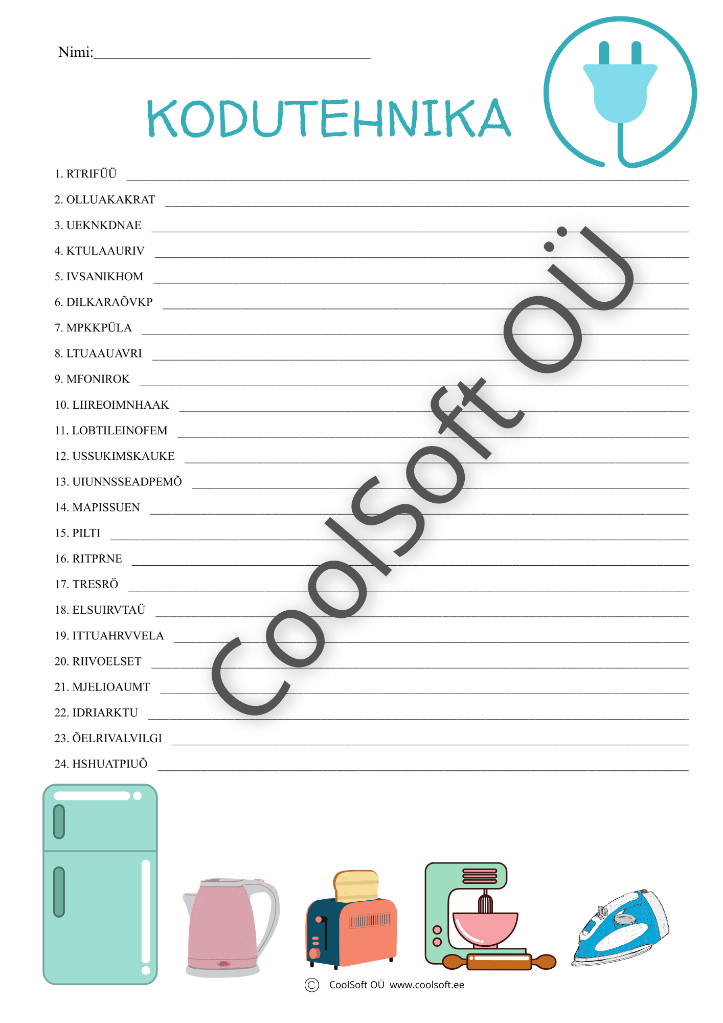 Tööleht nr 50 – tähed segamini. Kodutehnika