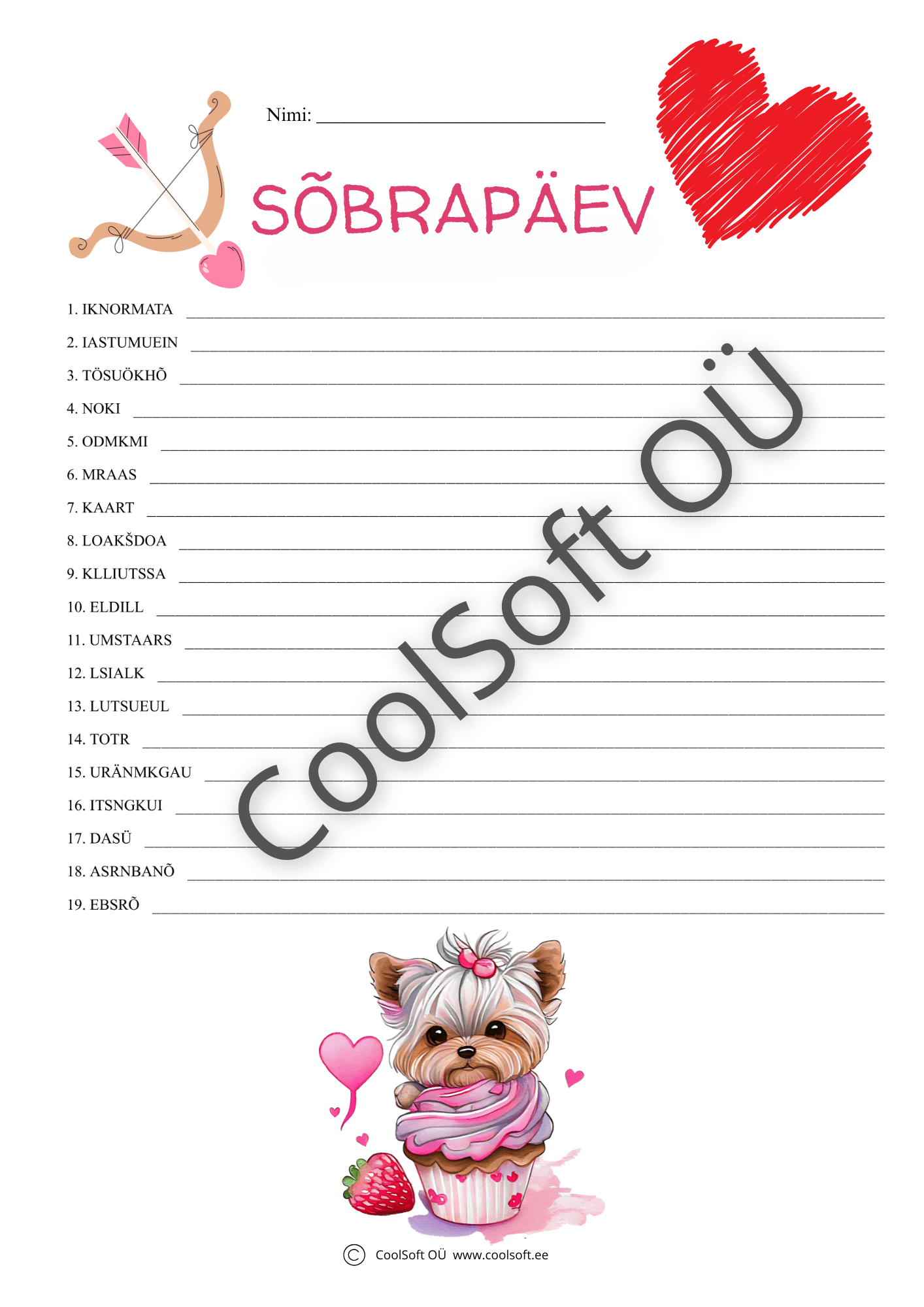 Teised sõbrapäevaga seonduvad töölehed leiad siit.