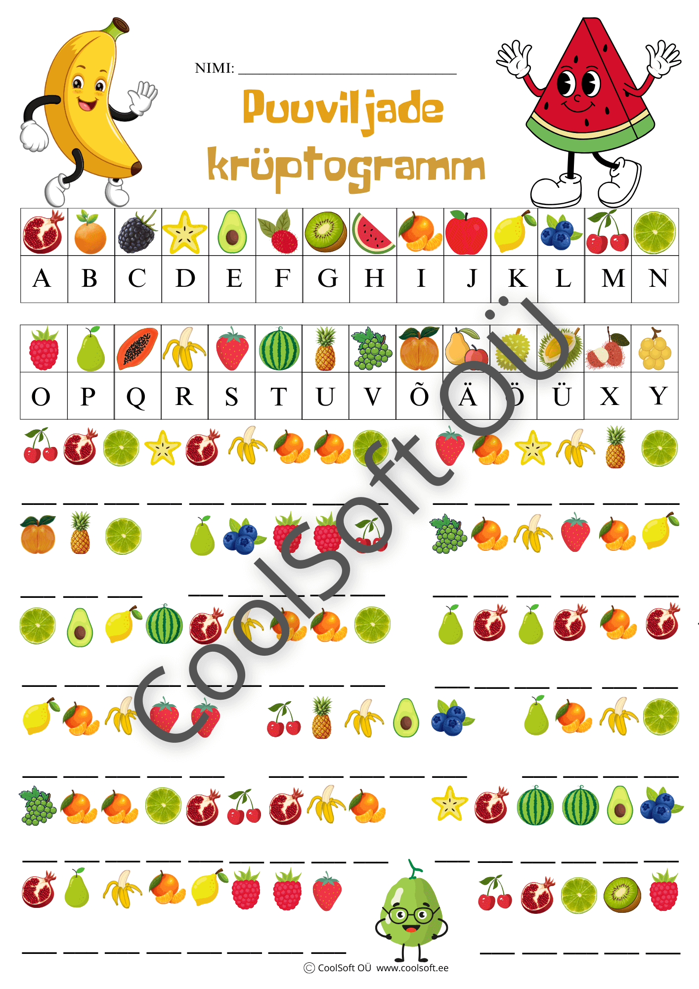Ole esimene, kes hindab toodet “Tööleht nr 261 – puuviljade krüptogramm” Tühista vastus