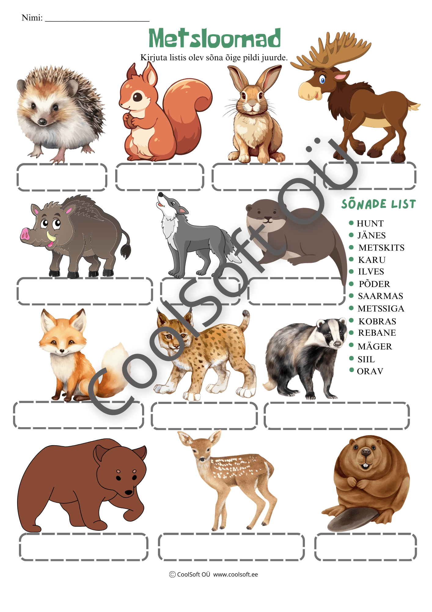 Teised metsloomadega seonduvad töölehed leiad siit.