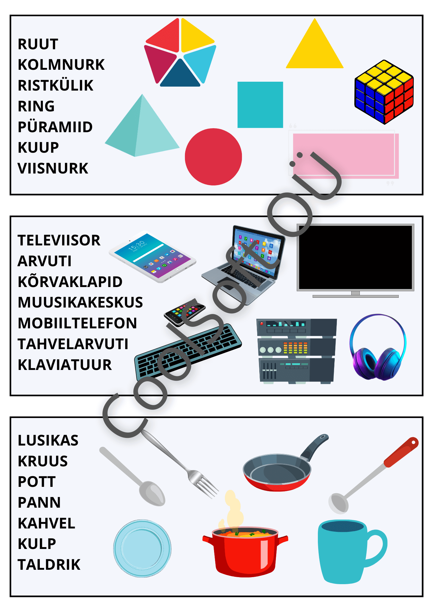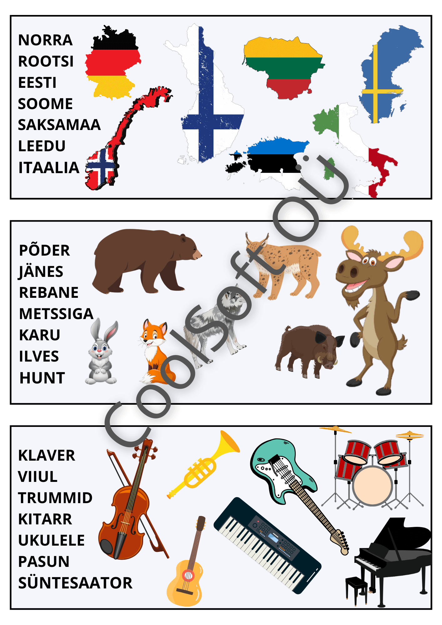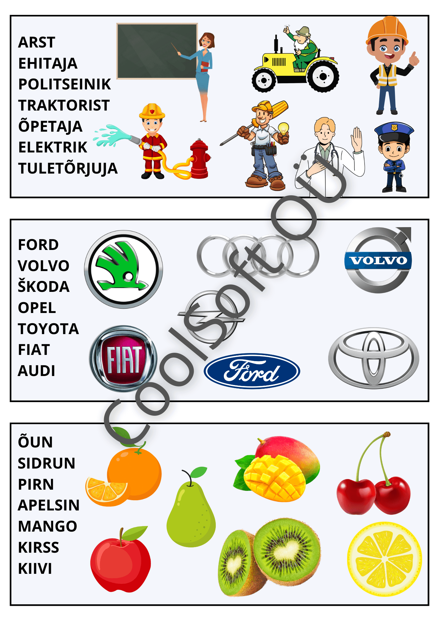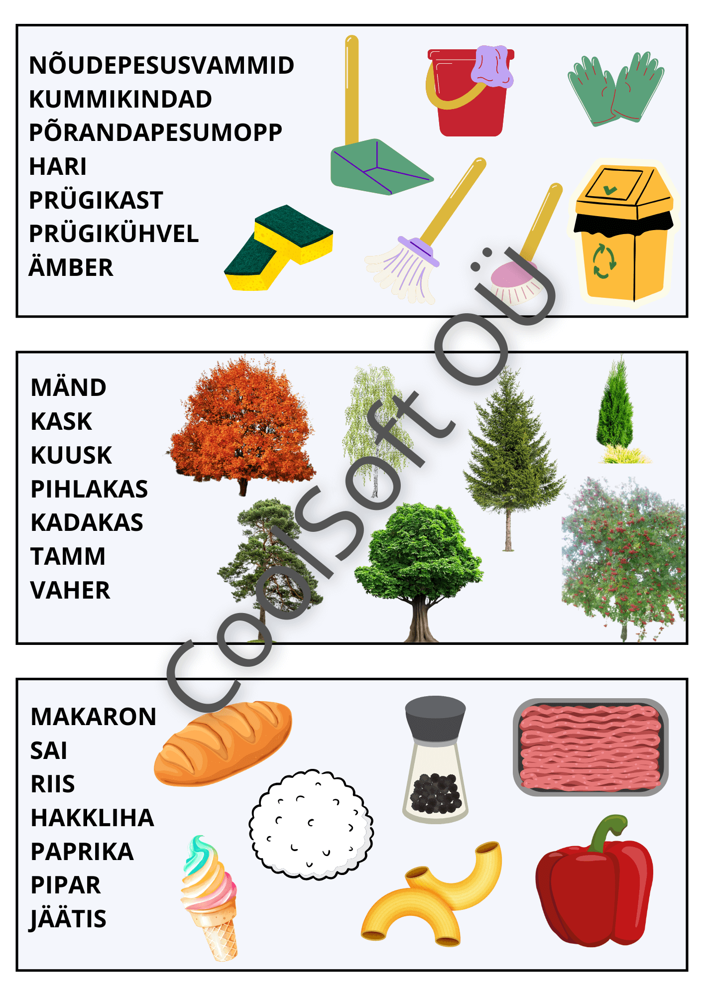Igal lehel on eraldi teema(d) (nt sport, loomad, ilm, kodu, riigid, ametid, puuviljad, köögiviljad jm), kus laps seob sõna vastava pildiga, arendab sõnavara, tähelepanu ja keelelist mõtlemist.
