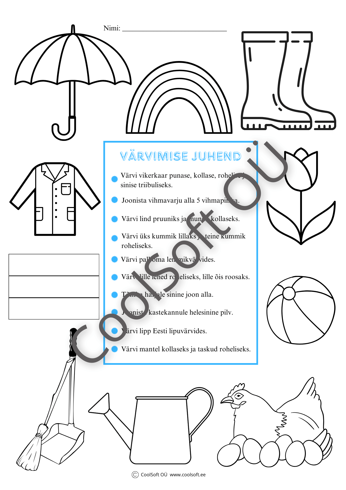 Ülesanded nõuavad tähelepanelikku lugemist, juhiste järgimist ning värvide teadlikku kasutamist.